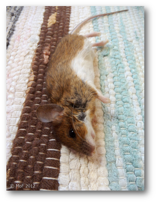 Igår hade Mia en bråd jaktdag igen. Ett av bytena var en stor skogsmus som hon inte orkade/brydde sig om att äta upp.
