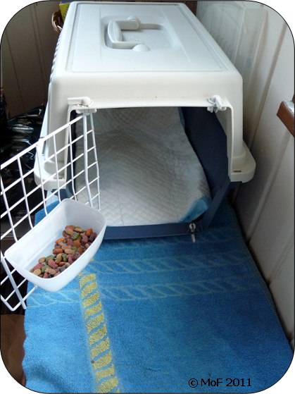 Kvart över fyra var jag hemma igen. Mia mötte vid parkeringen och hälsade mig välkommen hem. När jag kom fram till ytterdörren såg jag till min stora förtvivlan att luckan till hennes ingång var stängd! Den glömde jag tydligen öppna i morse. Hon hade alltså varit utestängd hela tiden jag var borta.