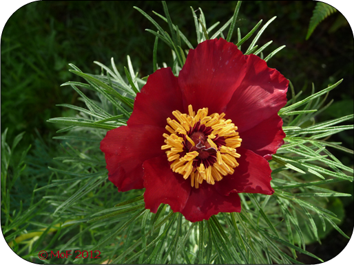 I morse hade den slagit ut, nejlikpionen. En djupröd, helt underbar färg. Den har en knopp till så jag får snart uppleva samma mirakel igen om ingen katastrof inträffar.