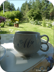 KaffekoppDå var det dags att ta fram min vackraste kaffeduk. Jag hade bjudit in min före detta chef (anno 1972) på efter­mid­dagskaffe. Den planen gick tyvärr om intet, duken var ostruken. I stället fick det bli en finduk som svärmor har sytt, jag hade varken tid eller lust att börja stryka.
