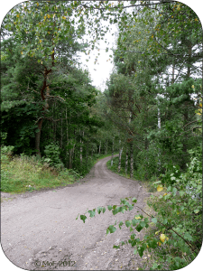 Vägen upp till Udden har länge kantats av en grön portal som är i vägen för höga fordon, men sen igår är det slut på det. Vår eminente ”vägmästare” fixade fri sikt på för­mid­dagen.