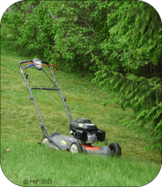 Utomhusstädningen i förrgår stötte inte på några hinder. Gräset blev hastigt och lustigt för långt på ”parad­sidan” av huset. För en gång skull var lilla gräsklipparen med på noterna och startade snällt efter en extra sup.