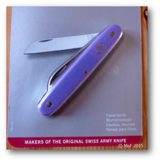 Han är bra finurlig julgubben. Hur kunde han lista ut att jag behövde en blomkniv med lila hand­tag? Tack igen! Om några månader kommer den till användning (om jag inte har förlagt den förstås.) 🙂