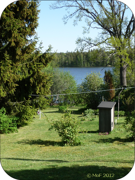 Hon ville gärna börja med kaffe i bersån så vi bänkade oss där med kaffe och glass. Innan vi hade hunnit förflytta oss ner till sjön kom ägaren till datorn jag städade med betalning för arbetet, så han fick göra oss sällskap med en mugg te.