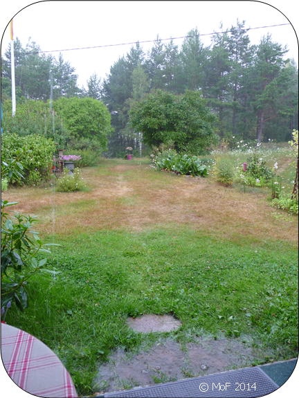 Idag utlovades nytt värmerekord. På Udden blev det lyckligtvis inget nytt rekord, men väl 30 grader igen. Till och med bikinin kändes för varm, så jag har gått omkring i ett florstunt ”skynke” sen jag var i väg och vattnade i Nemos mattes växthus. Vattnet svalkade så länge jag befann mig i det, men när jag hade gått upp från stranden var jag lika varm och svettig igen.