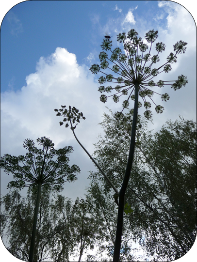 Det visade sig nämligen att duntraven är högre än mina 1,65 cm och samsas med lika höga nässlor. Men skam den som ger sig. Jättelokorna måste ha varit minst två meter höga insåg jag när jag till slut nådde fram. Dom lever alltså väl upp till sitt namn.