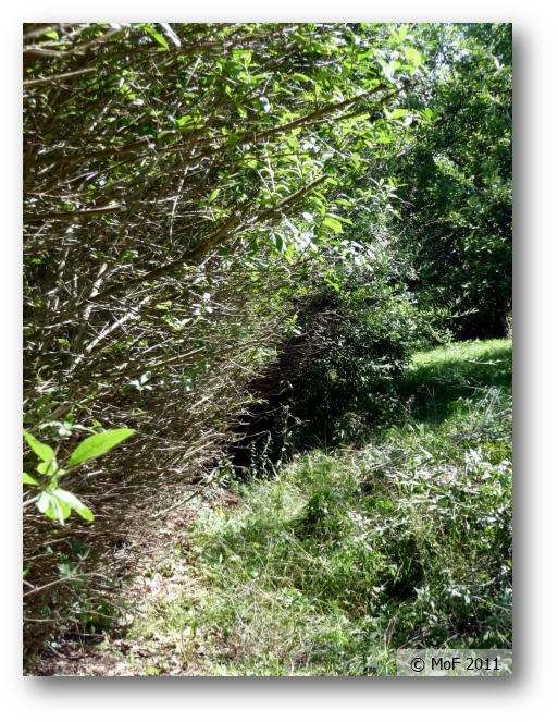 I fredags kväll råkade jag vara ute då fru sommargrannen anlände så vi bytte några ord. När jag ändå hade henne inom hörhåll, passade jag på att nämna att häcken tillhör henne och övriga delägare. Tanken har nämligen slagit mig att hon kanske tror den är min? Den ligger mitt på tomtgränsen så det vore inte så konstigt.