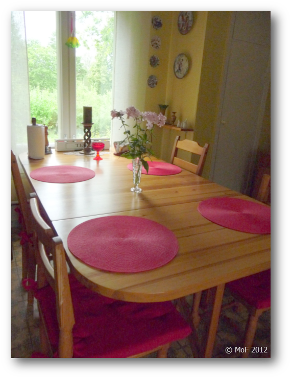 På tisdag eftermiddag kom så föreningens kassör som avtalat (se inlägg 8.8). ”Så fint du har det, vilket härligt ställe!” tyckte hon, så jag kunde andas ut. 😉 Tyvärr blåste det väldans friska vindar så vi var hänvisade till köket, men det gick ju bra det också.