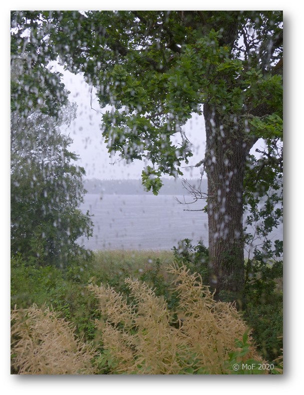 Varken onsdagens eller torsdagens besök gick av stapeln i bersån på grund av regnhot. Men det gick förstås lika bra att minska på Husses jordgubbskaka vid köksbordet. Då grannarna på udden mittemot drog sig hemåt i torsdags hade det börjat regna som aviserat.