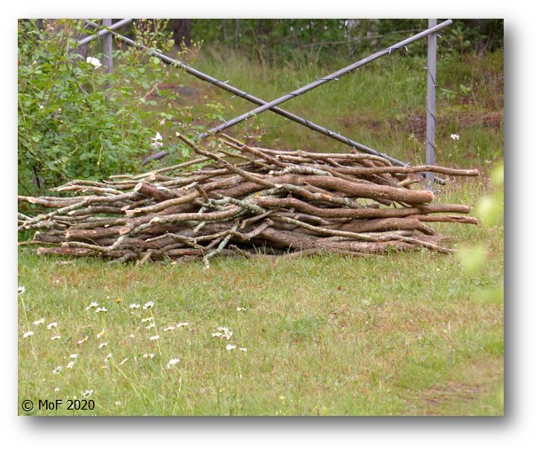 Dom längsta och grovaste behöll jag, vilket innebär att 90 % nu är kapade två gånger och omsorgsfullt kvistade. Många blom- och staketpinnar blev det. 😀