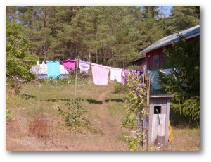 Eftersom jag var i städtagen blev tvättmaskinen också tömd. Tack vare sol och friska vindar torkade tvätten på nolltid.