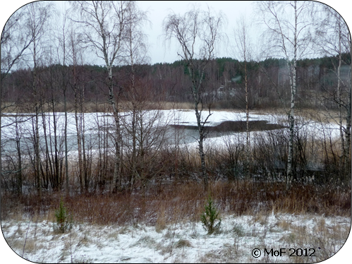 Efter frukosten gick jag ut med kameran. Efter den kyliga natten låg det dimma över sjön och sjöfåglarna var redan i full färd med frukost. Himlen började ljusna och det kändes som om jag var ensam i hela världen. Det var jag uppenbarligen inte – den pastorala idyllen stördes av gevärsskott. Antar det är älgjaktstider?