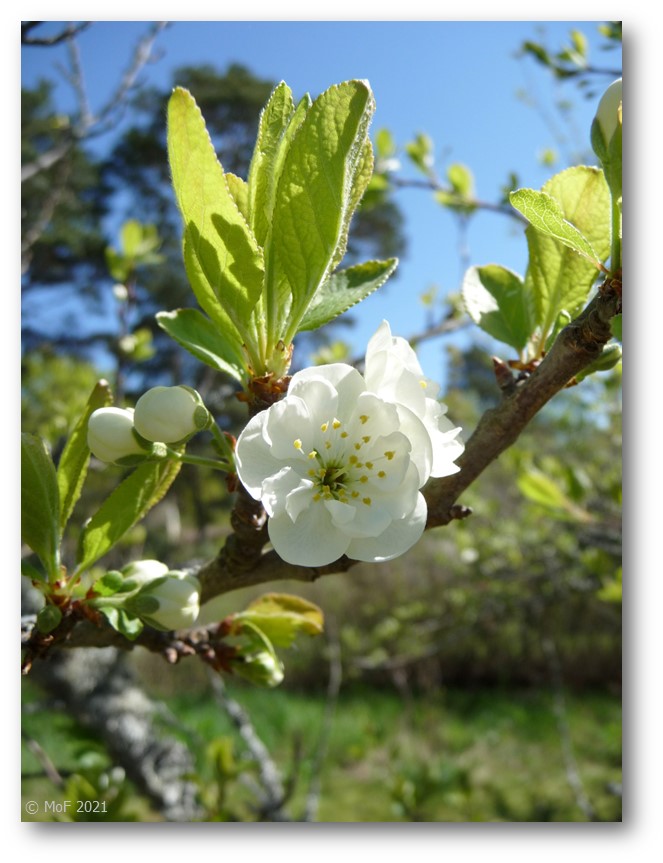 Sommargrannens körsbärsträd blommar för fullt, lilla Elvira har slagit ut sina första blommor och inom kort slår plommonträden ut sina. En ljuvlig tid. 😊