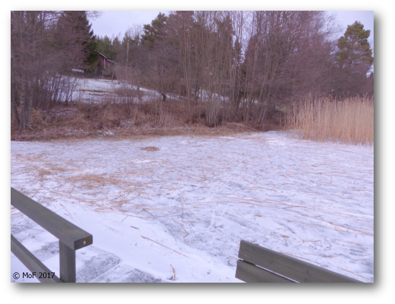 Jag fattar inte varför jag hade beställt tid till klockan tre? I vanliga fall brukar jag boka sista tiden, dvs kl 16? Hade jag gjort det den här gången också hade jag hunnit bli klar med vassen. Synnerligen dålig planering. Jag hade för all del inget beting på när vassen skulle vara kapad, men ville bli klar innan det eventuellt kom mera snö.