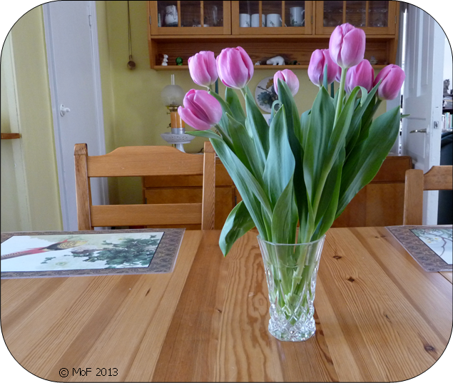 Kl 12.40 kände jag mig mogen att fortsätta arbetet. Klockan två visste jag att jag skulle få en paus eftersom dagens besökare skulle komma då, så det blev en kort uppmjukning, men till dess hade jag hunnit ordna så att jag fick en bekvämare arbetsställning.